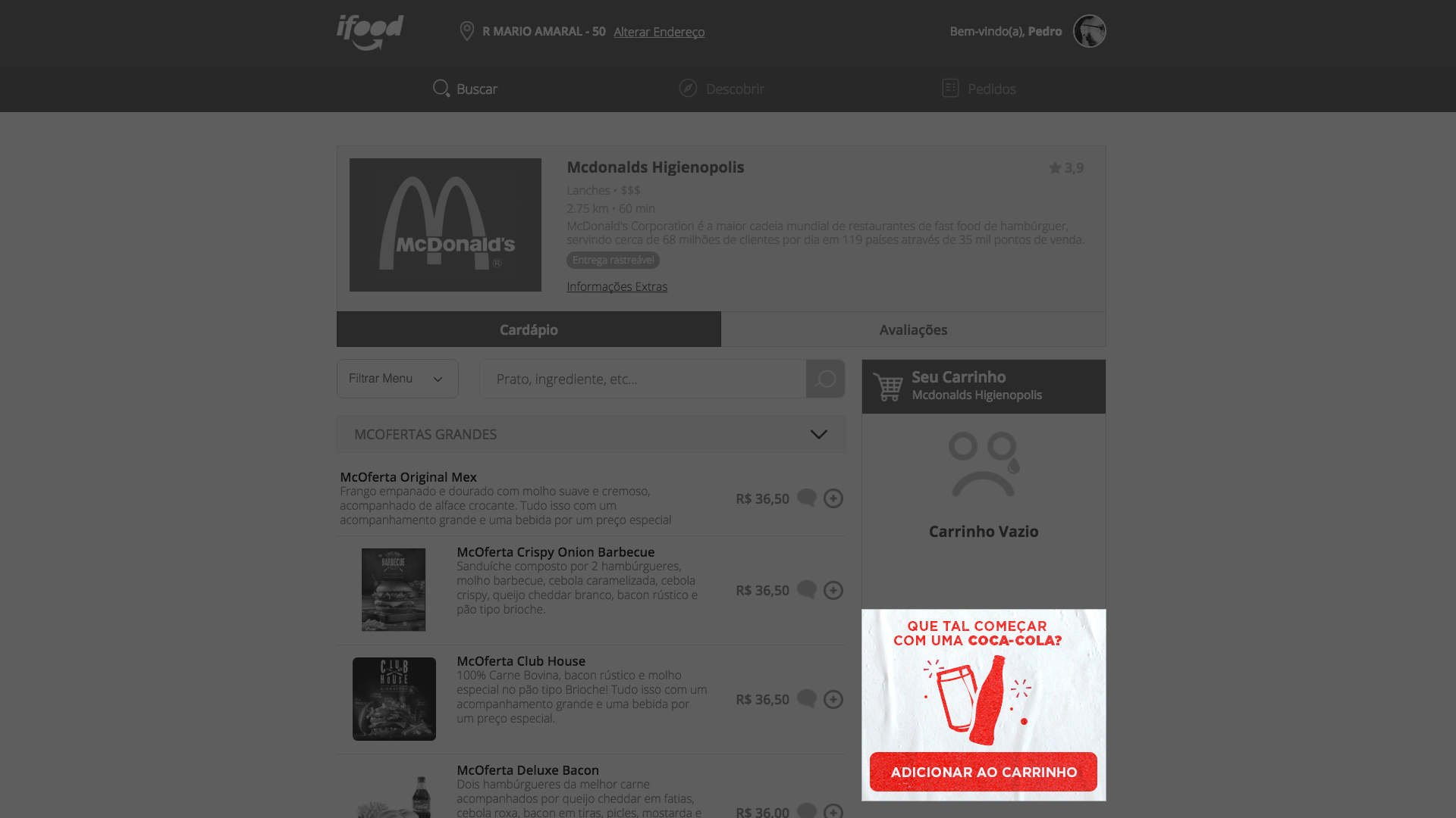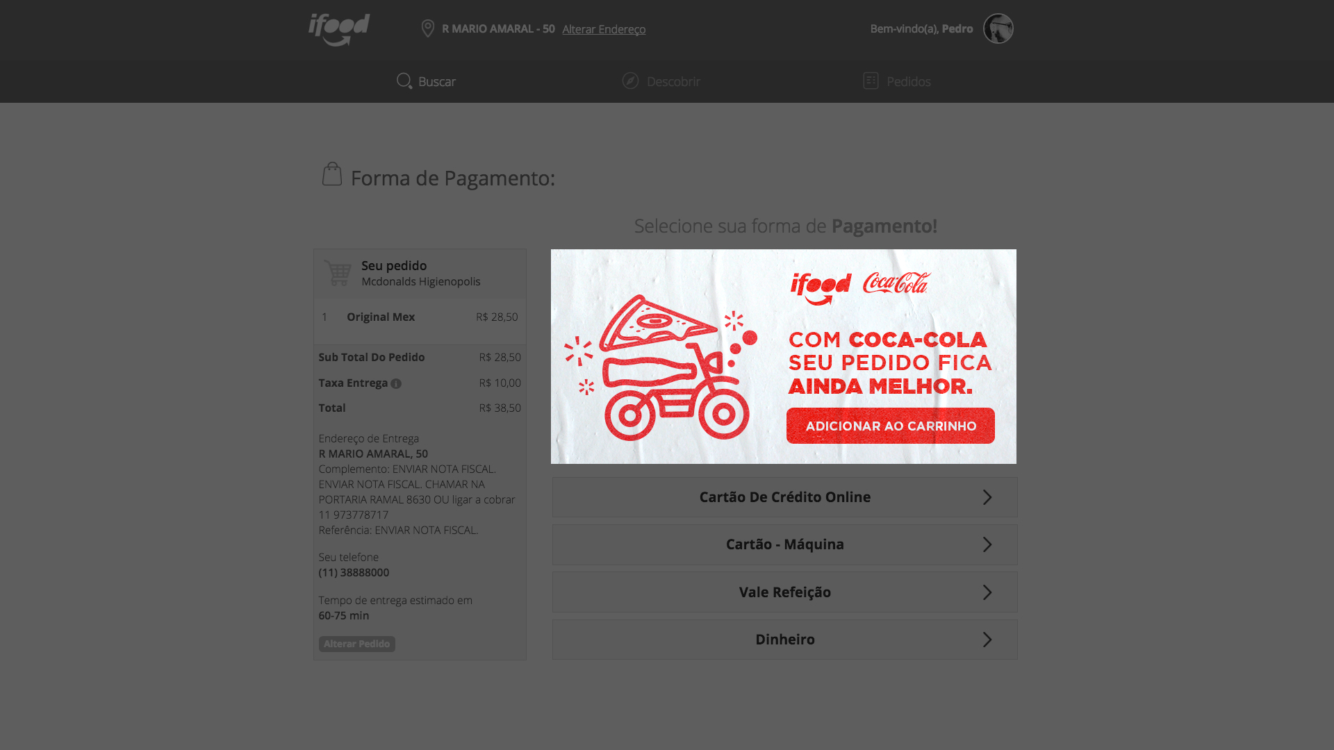 We presented also new improvements to Ifood's interface to make easier to get a coke with the order.